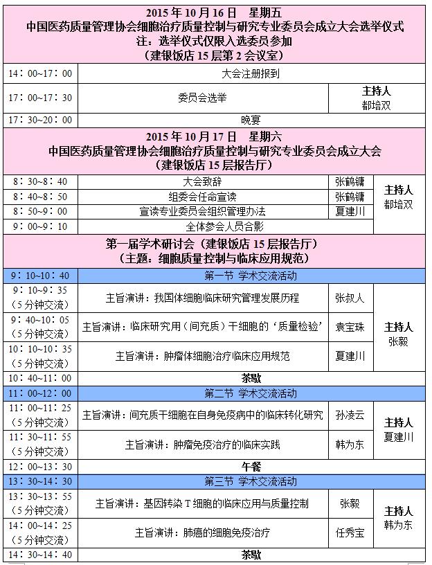 中國醫藥質量管理協會細胞治療質量控制與研究專業委員會(籌)主辦、中山大學附屬腫瘤醫院、鄭州大學一附院、拜西歐斯(北京)生物技術有限公司聯合承辦的“中國醫藥質量管理協會細胞治療質量控制與研究專業委員會成立大會暨第一屆學術研討會”將于20151016-17北京召開,成立大會將選舉產生第一屆委員代表常務委員會委員,研討會將圍繞“細胞質量控制與臨床應用規范”主題開展學術交流,屆時將邀請國內外細胞治療領域(包括干細胞和免疫細胞)的專家學者就研討會主題作學術報告。專業委員細胞治療質量控制與研究領域學術交流的大平臺,將定期舉辦各種規模的學術交流會議,通過學術會議以期達成行業共識,推動細胞制劑質量控制標準體系的建立和相關政策出臺,使我國的細胞治療行業在規范化的基礎上健康有序發展。