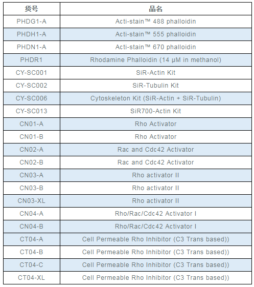 由于產(chǎn)品比較有特色,研究細(xì)胞骨架總是繞不開他們,包括F-actin、Tubulin的可視化以及信號通路中rac/cdc/rho的激活劑抑制劑等,同時促銷時間短暫,只到2月底(真希望這個2月有31天),