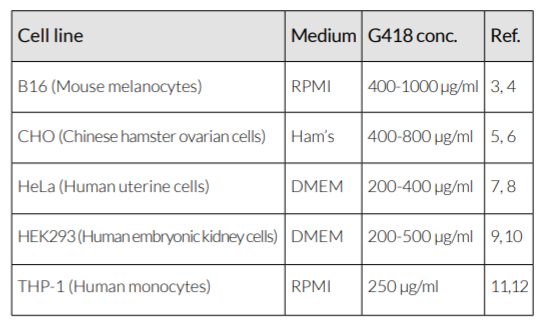 細(xì)胞測試:在G418敏感和G418抗性哺乳動物細(xì)胞系中驗證產(chǎn)品效果