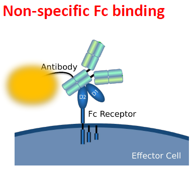 在我們流式實驗中,通常使用的抗體都是會有Fc段存在的,而細胞如果高表達Fc受體(比如巨噬細胞、B細胞或者腫瘤細胞等),那么在抗體染色的過程中,很有可能抗體Fc段會與細胞表面的Fc受體進行結合,從而產生非特異性的染色結果,最終導致流式實驗結果假陽性/假陰性的存在。