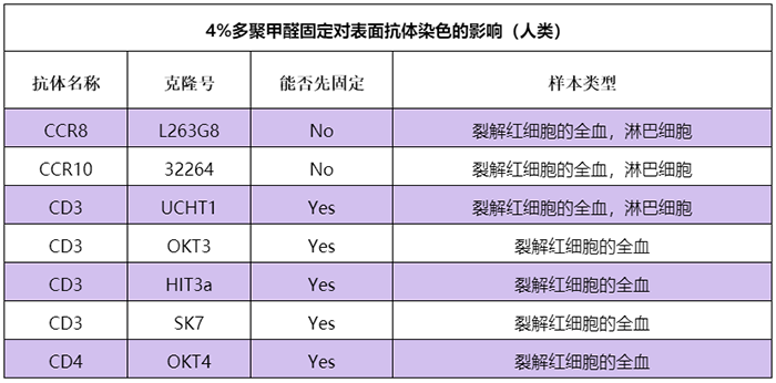 在實際遇到預固定和指標不兼容時,我們會做如下建議:(1)使用替代指標來更換那些受固定影響的指標;(2)如果沒有可以替代指標,請根據實驗重要性原則來取舍檢測指標,比如是磷酸化的指標會比表面的指標更為重要。雖然這一段看起來有一點像“廢話”,但我們需要在實際實驗過程中學會做取舍和判斷。