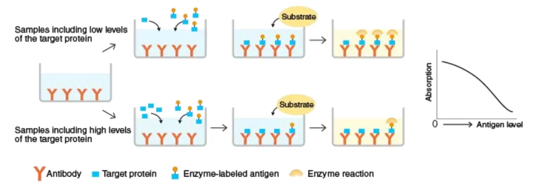 1、樣本中分析物水平較低可以使用哪些方法改進檢測?通過增加洗滌次數(shù)和兩次洗滌之間的浸泡時間降低背景。控制測定精確度。例如,在移液時要更加小心和一致,使用干凈的紙巾拍板,以避免污染。增加孵育時間。但這通常也會增加背景,因此檢測靈敏度不一定會增加。如果可以的話,建議濃縮樣本。使用5-PL曲線擬合方法,更準確地計算標準曲線下端的樣本濃度。在大多數(shù)情況下,樣本可能只含有非常低或無法檢測到的分析物水平。這時無論如何操作和測定,仍然無法檢測到準確濃度。2、包板應如何存放?如果包被完抗體的板不能立即使用,應將其密封并在4°C儲存過夜。3、為什么使用同一克隆號的捕獲抗體和檢測抗體建立ELISA實驗沒有成功?如果使用相同的克隆抗體進行檢測和捕獲,則抗原表位可能已經(jīng)被其中一種抗體占據(jù)并抑制另一抗體結(jié)合。建議捕獲和檢測抗體選擇不同的克隆號。4、應該使用哪種包被緩沖液?一般來說,建議使用PBS(pH 7.4)或碳酸鹽緩沖液(pH 9.5)。確切的包被緩沖液可能取決于要檢測的細胞因子。5、為什么細胞因子流式染色與ELISA測定之間沒有良好的相關(guān)性?流式細胞術(shù)檢測的胞內(nèi)細胞因子代表檢測時的陽性細胞比例,ELISA代表細胞因子隨時間的積累量。可能少量的陽性細胞在一段時間之后會分泌大量的細胞因子于培養(yǎng)上清中,導致ELISA的結(jié)果與胞內(nèi)因子染色的結(jié)果不一致6、可以使用細胞培養(yǎng)板進行ELISA實驗嗎?不可以。細胞培養(yǎng)板設(shè)計用于達到細胞培養(yǎng)目的,通常不具有高蛋白結(jié)合能力。對于ELISA,建議使用具有高蛋白結(jié)合能力的板,例如 Nunc Maxisorp?酶標板。7、血清等樣本可以重復使用嗎?不建議重復使用樣本。為了獲得準確的結(jié)果,樣本應分裝儲存,僅供一次性使用。如果重復使用樣本,需要進行額外的驗證實驗,以確保實驗準確性。8、在什么步驟中,可以暫停ELISA實驗?可以冷凍板子以備后用嗎?最好遵循說明書操作,沒有任何可以暫停實驗的步驟。但是,如果一定需要暫停實驗,建議在封閉步驟(包被捕獲抗體后)。可以在孔中加入200 μL封閉緩沖液,并將板在4°C過夜(信號損失最小或沒有)或在-20°C冷凍幾天(可能會對信號產(chǎn)生一些影響)。不建議在第一步進行(在4°C用捕獲抗體包被超過16-20小時),因為可能會導致高背景。9、包被捕獲抗體可以超過過夜的時間嗎?通常來說,建議在4°C包被16-20小時。較長的孵育時間可能會增加與板結(jié)合的捕獲抗體量,會增加背景。10、培養(yǎng)基中的酚紅會干擾ELISA測定嗎?不會,培養(yǎng)基中酚紅的吸光度可以在計算時,通過扣除空白孔中本底的吸光度而消去,因此不會干擾ELISA測定的讀數(shù)。11、對于一些ELISA試劑盒,為什么血清樣本需要稀釋?血清樣本稀釋可以盡量減少樣本和標準品之間的基質(zhì)差異,以獲得更加準確的結(jié)果。12、如何提高ELISA檢測獲得更好的信號和靈敏度?增加孵育時間,但這也可能會增加檢測的背景,同時不改變靈敏度。在孵育步驟中搖動板子。確保標準品在使用前完全溶解。在兩次洗滌之間增加浸泡時間,以進一步降低背景。如果可以的話,在450-570 nm處讀板以減去本底。通過控制移液誤差或使用更大體積的洗滌緩沖液洗滌來改善CV值。使用5-PL或4-PL曲線擬合方法,而不是線性曲線擬合。