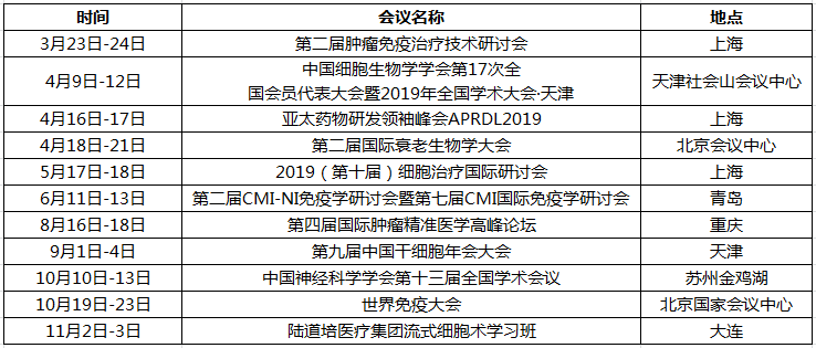 2019年達科為生物技術有限公司參展會議列表